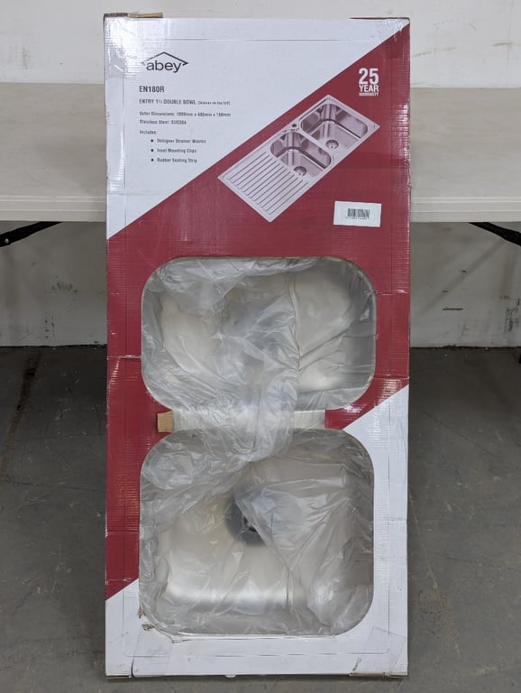 RRP: $299, Abey Entry 1 and 3/4 Bowl Left Hand Drainer Sink, Model: EN180RBrand AbeyFinish Colour SatinFinish Colour Description SatinHeight (mm) 177 mm Width (mm) 1080 mm Depth (mm) 480 mmLength (mm) 1080 mmModel Number EN180RBowl Size 355 (W) x 405 (D) x 165 (H)Sink Type TopmountBowl Type 1 & 3/4