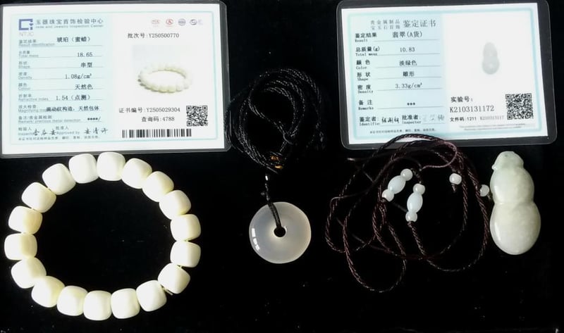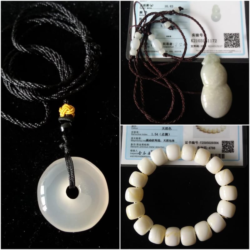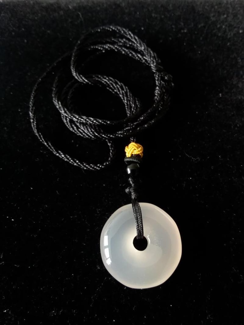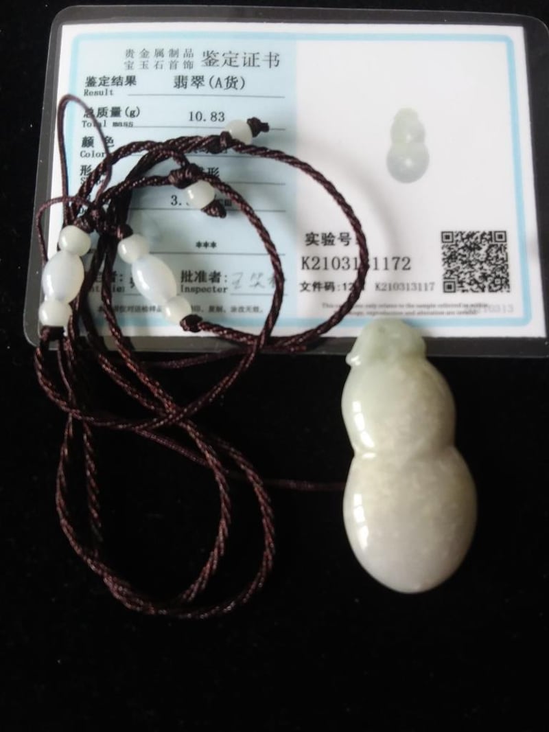 CERTIFIED JADE PENDANT NECKLACE WITH JADE DONUT AND STRETCH BRACELET Condition: Good - Refer Images 0162946+30FC