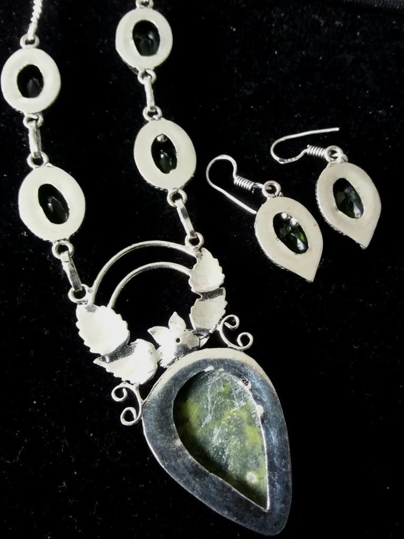 925 SILVER PLATED GEMSTONE NECKLACE AND EARRINGS SET Condition: Good - Refer Images 0162946+32FC