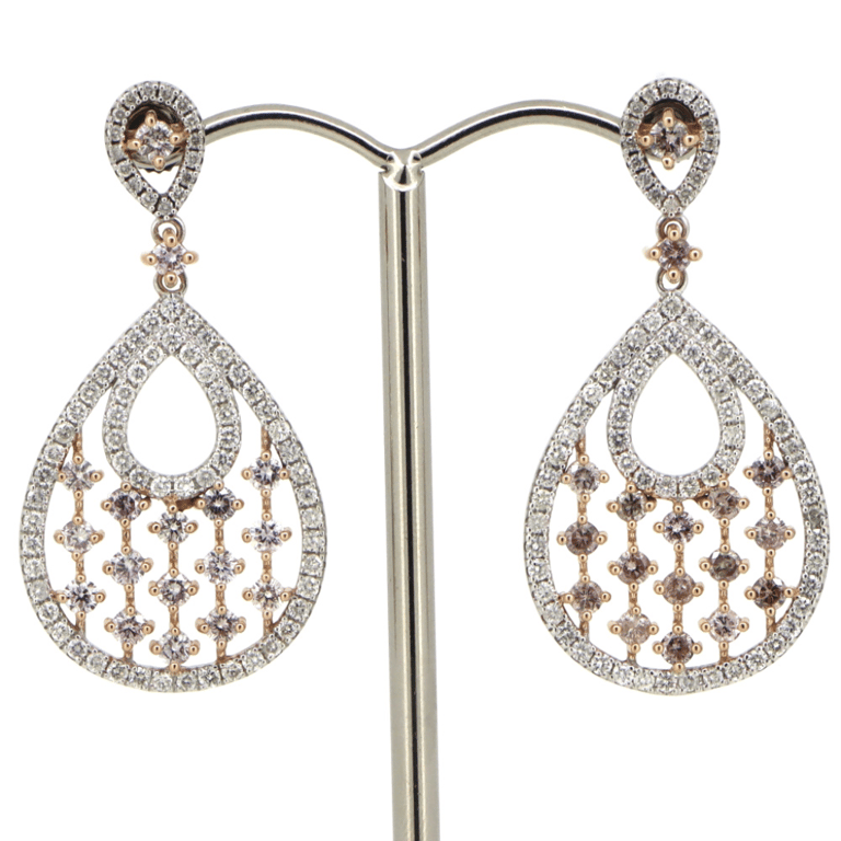14K WHITE/ROSE GOLD, FANCY PINK DIAMOND, DROP EARRINGS.