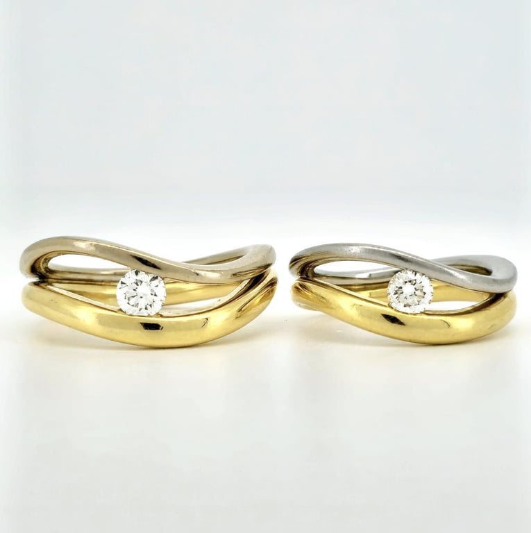 2 X 18CT YELLOW & WHITE GOLD DIAMOND "MAPPIN & WEBB" MATCHING RINGS.