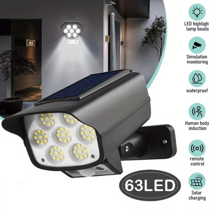 63 LED Solar-Powered Motion Sensor Outdoor Light LED Street Lamp, Human Detection, Wall Light for Garden, Patio, or Yard - Sleek Design, Durable Plastic Body, Modern Lighting, Longlasting Durability, Black