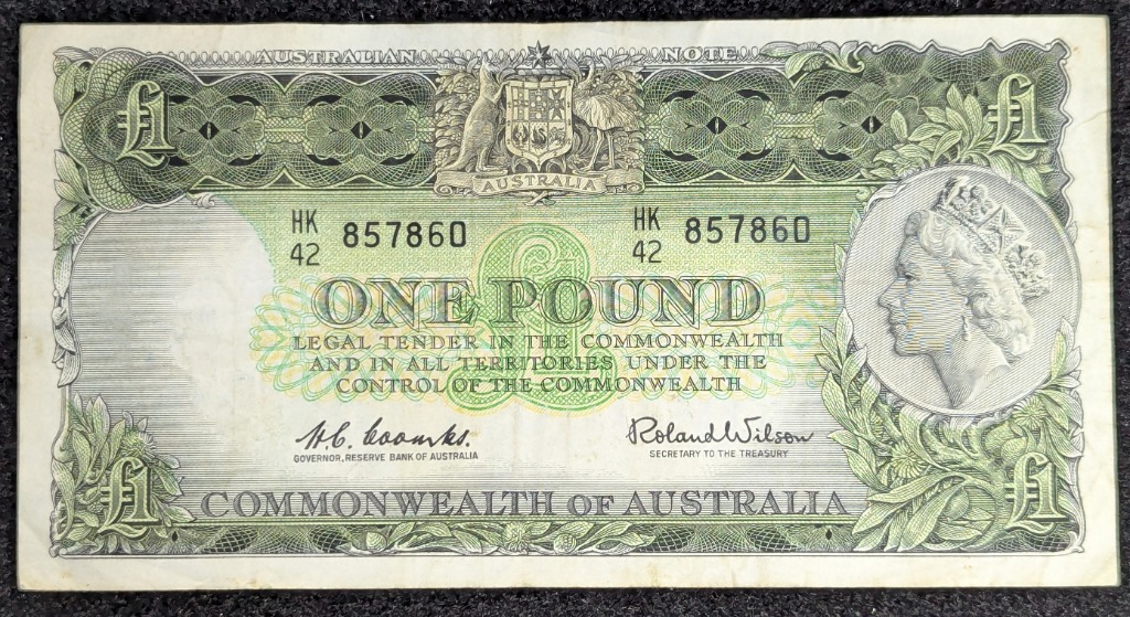 COMMONWEALTH OF AUSTRALIA ONE POUND BANKNOTE SIGNED BY COOMBS/WILSON, HK42 857860Condition: Ef584893+133