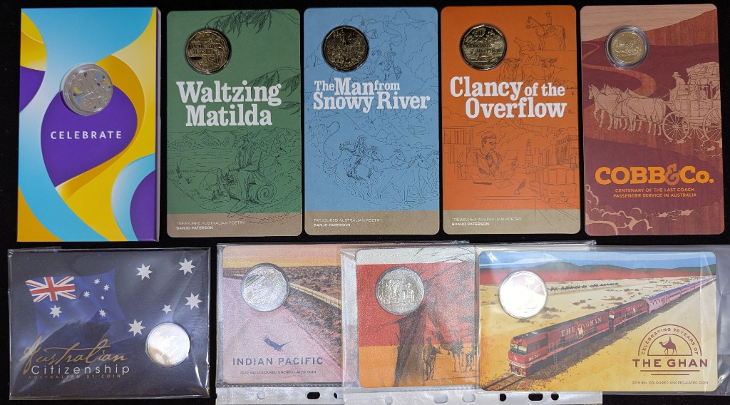 Three Banjo Paterson Fifty Cent Coins In Cards,