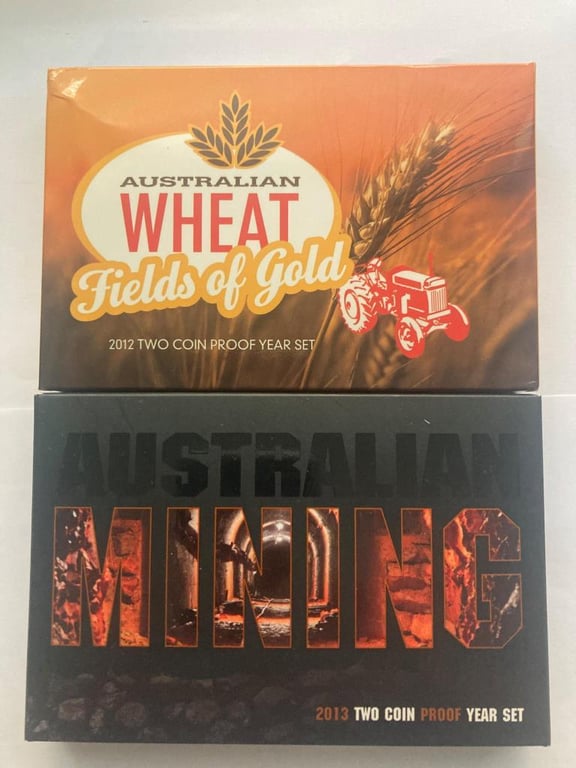2008-2013 RAM TWO COIN PROOF SETS X 8 COMPRISING, 2008 INTERNATIONAL YEAR OF PLANET EARTH, 2009 INTERNATIONAL YEAR OF ASTRONOMY, 2010 BURKE & WILLS EXPEDITION, 2011 AUSTRALIAN WOOL, 2012, AUSTRALIAN WHEAT, 2013 AUSTRALIAN MINING 488248+7