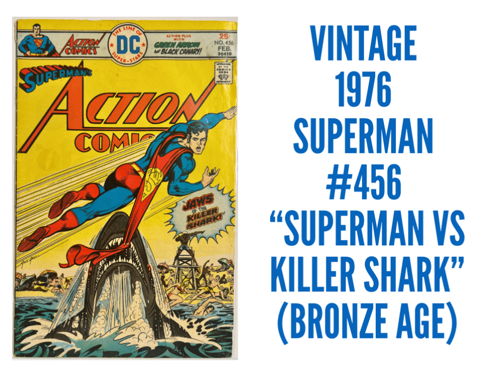 1976 ACTION COMICS #456 – BRONZE AGE SUPERMAN VS. KILLER SHARKThis 1976 Action Comics #456 Issue Showcases Superman Battling A Leaping Killer Shark In A Wild Aquatic Cover Scene. Includes A Backup Story With Green Arrow And Black Canary.- 1976 Action Comics Issue #456- Bronze Age Dc Comic- Superman Ocean Cover, Bonus Team-UpsSize: Condition: Good - Refer To Images+117