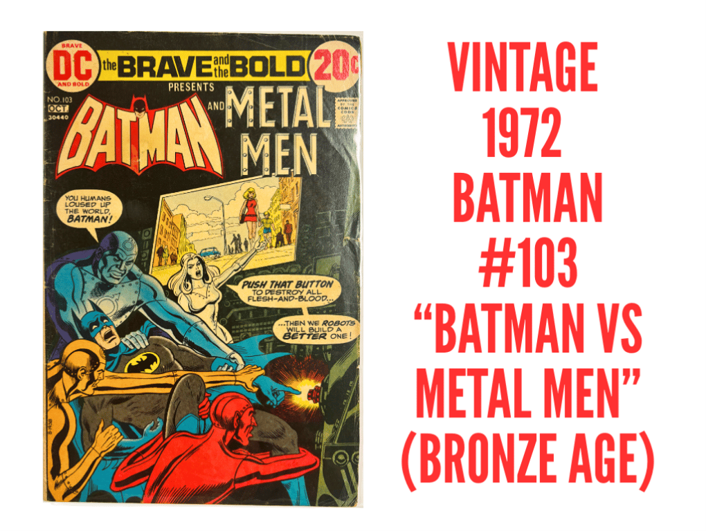 1972 BRAVE AND THE BOLD #103 – BRONZE AGE BATMAN & METAL MEN CROSSOVERThis 1972 Brave And The Bold #103 Issue Pairs Batman With The Metal Men In A Philosophical Showdown About Humanity And Destruction. A Unique Bronze Age Team-Up With Android Heroes.- 1972 Brave And The Bold Issue #103- Bronze Age Batman Crossover- Features The Metal MenSize: Condition: Good - Refer To Images+118