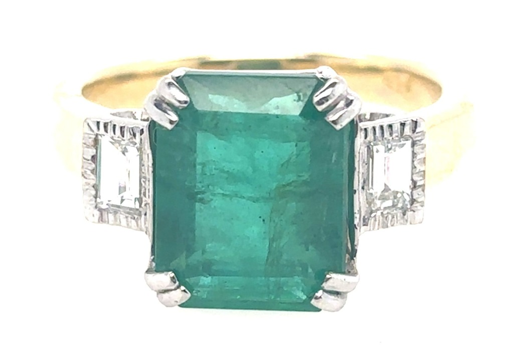 18CT YELLOW AND WHITE GOLD EMERALD AND DIAMOND RINGFeaturing An Emerald Cut Emerald, Claw Set, 4.34Ct In Weight (11.35 X 8.87 X 5.14 Mm), And Vivid Green In Colour As Per Aig Report Number Gem2024050211337. 2 Baguette Cut Diamonds, 0.46Ct In Total Combined Weight, Vs In Clarity And F In Colour. Finger Size O1/2.Total Item Weight: 7.33gCondition: Good - Refer To ImagesThis valuation has been conducted by an independent third-party professional. The valuation amount is an assessment by the issuing valuer and does not reflect the auction value of the item.Any inquiries regarding the valuation should be directed to the issuing valuer (refer to contact details on the certificate), as Lloyds Auctions has no affiliation or influence over the valuation, the valuer, or the stated amount.Insurance Replacement Valuation Amount: $44,000.00CROSSDOCK162897+7