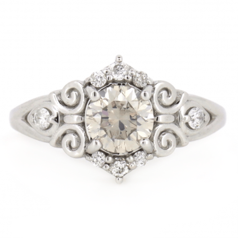 14K WHITE GOLD AND DIAMOND, ANTIQUE INSPIRED RING. The Centre Features, One Round Brilliant Cut, Diamond (2.17Ct, G-H Colour, P2-P3 Clarity), 4 Claw Set. Encompassing The Centre And Decorating The Shoulders Are, 8 Round Brilliant Cut, Diamonds (0.22Ct Tdw, I-K Colour, Si2-P2 Clarity), Claw Set. Ring Size L. Valuations Provided by an Independent Third-Party Professional Not Directly Associated With Lloyds Auctions at AUD $$67,250.00This valuation has been conducted by an independent third-party professional. The valuation amount is an assessment by the issuing valuer and does not reflect the auction value of the item. Any inquiries regarding the valuation should be directed to the issuing valuer (refer to contact details on the certificate), as Lloyds Auctions has no affiliation or influence over the valuation, the valuer, or the stated amount. Condition: Good - Refer Images 0645832+5251