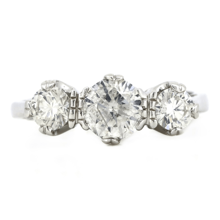 The Centre Features, One Round Brilliant Cut, Diamond (0.77Ct, G-H Colour, I2 Clarity), 6 Claw Set. Flanking Either Side Of The Centre Are, 2 Round Brilliant Cut, Diamonds (0.55Ct Tdw, G-H Colour, Vs-Si Clarity), 4 Claw Set. Ring Size L.