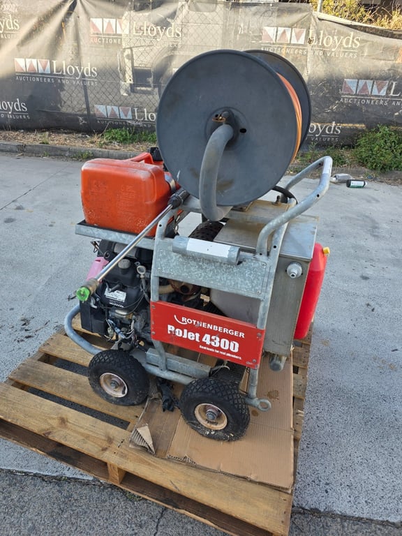 Rothenberger project 4300 psi pressure cleaner, some hoses, submersible pump, petrol can.