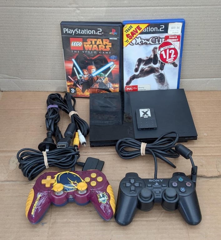 Sony playstation PS2 slim videogame console SCPH-90002, power and AV cord, 2X controllers and 3 games
