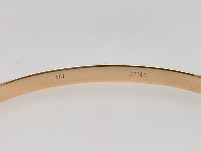 9k Yellow Gold Bangle, Bangle Diameter: 6.3cm, Stamped: 9ct