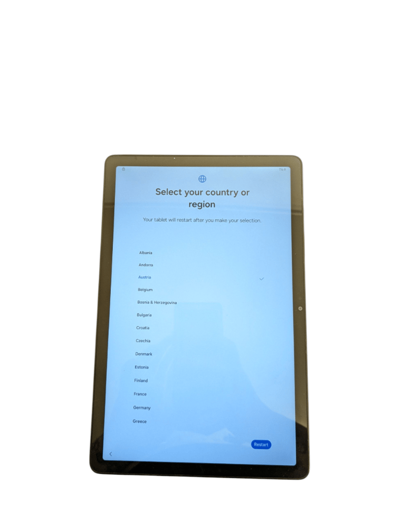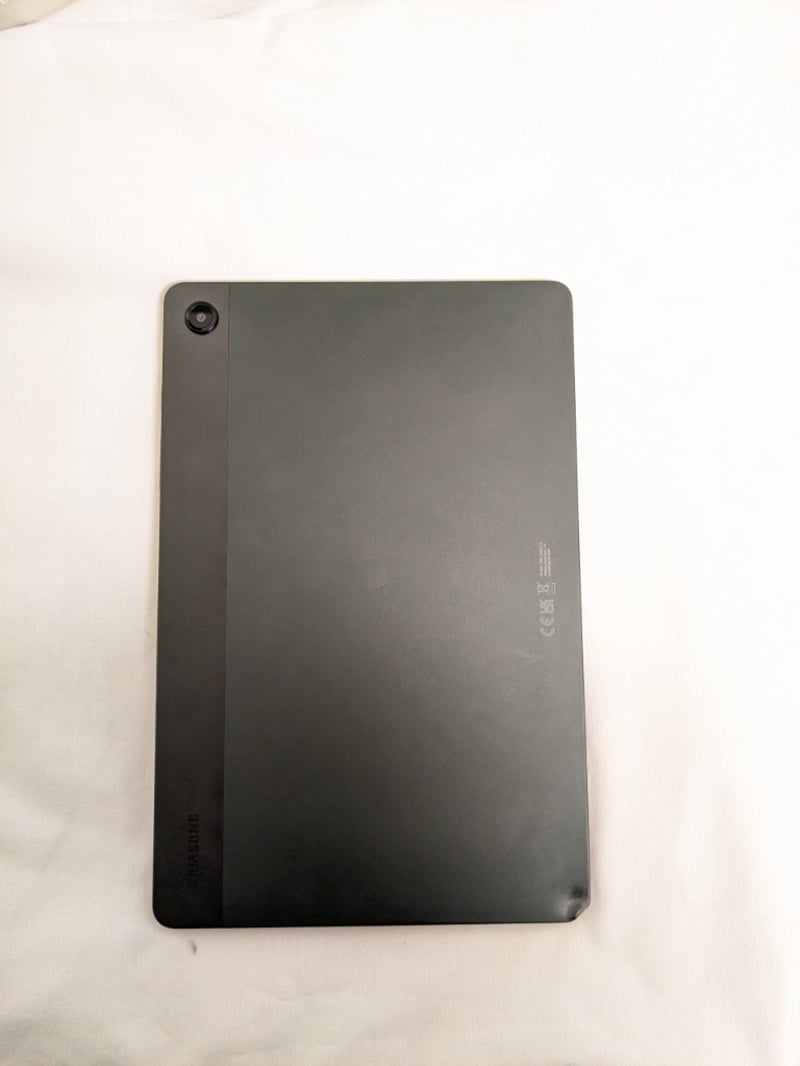 Samsung tablet, model unknown, storage size unknown NO CHARGER INCLUDED, LOCKED IDEAL FOR PARTS ONLY, DENT ON BOTTOM RIGHT CORNER