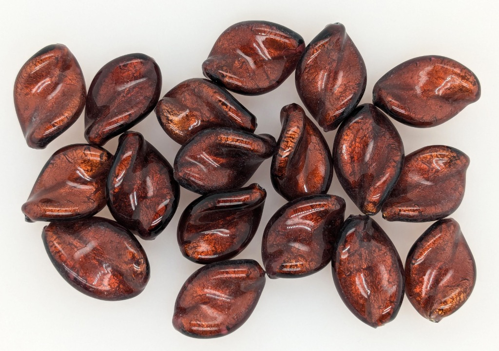 18 X ITALIAN MURANO DRILLED BEADSColour: Brown, Shape: Leaf, Size: 20MmCondition: Good - Refer To ImagesFC162953+72