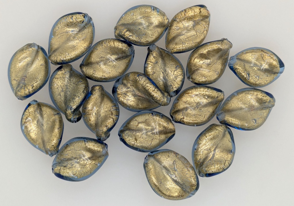 18 X ITALIAN MURANO DRILLED BEADSColour: Blue/Gold, Shape: Leaf, Size: 20MmCondition: Good - Refer To ImagesFC162953+74