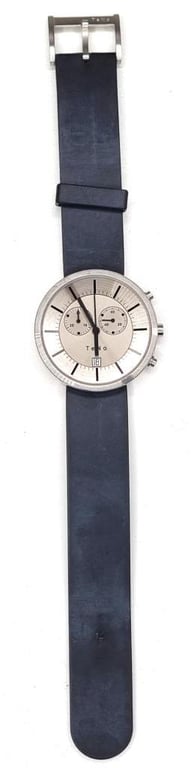 TENO WATCH DYRON CLASSIC CHRONOGRAPH Brand: Teno Model Number: 089.2003.01 Dial: Steel with printed markers. Case: Stainless steel Bracelet: Black rubber strap Swiss Made, Quarz Movement, Sapphire Crystal,3Atm, Ø 40Mm. Condition: Good - Refer to Images FC