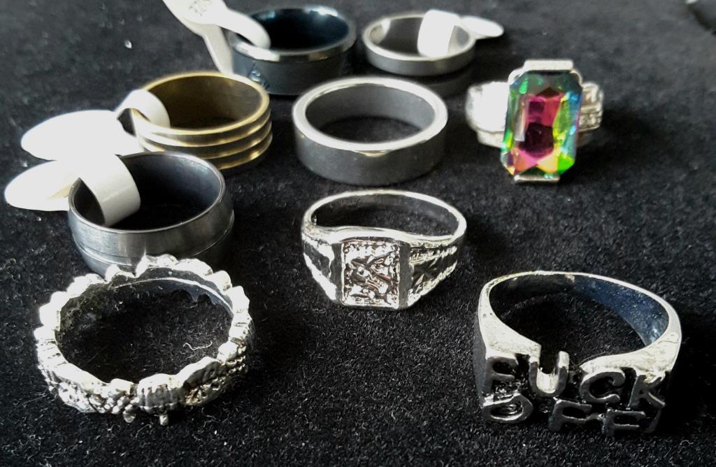 ASSORTED UNISEX RINGS X 9 Condition: Good - Refer to images. 0+31