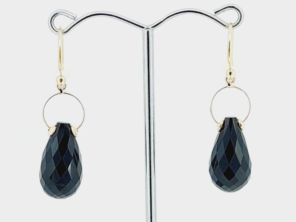 9K YELLOW GOLD ONYX TEARDROP EARRINGS Condition: Good - Refer To Images CROSSDOCK 162949+33