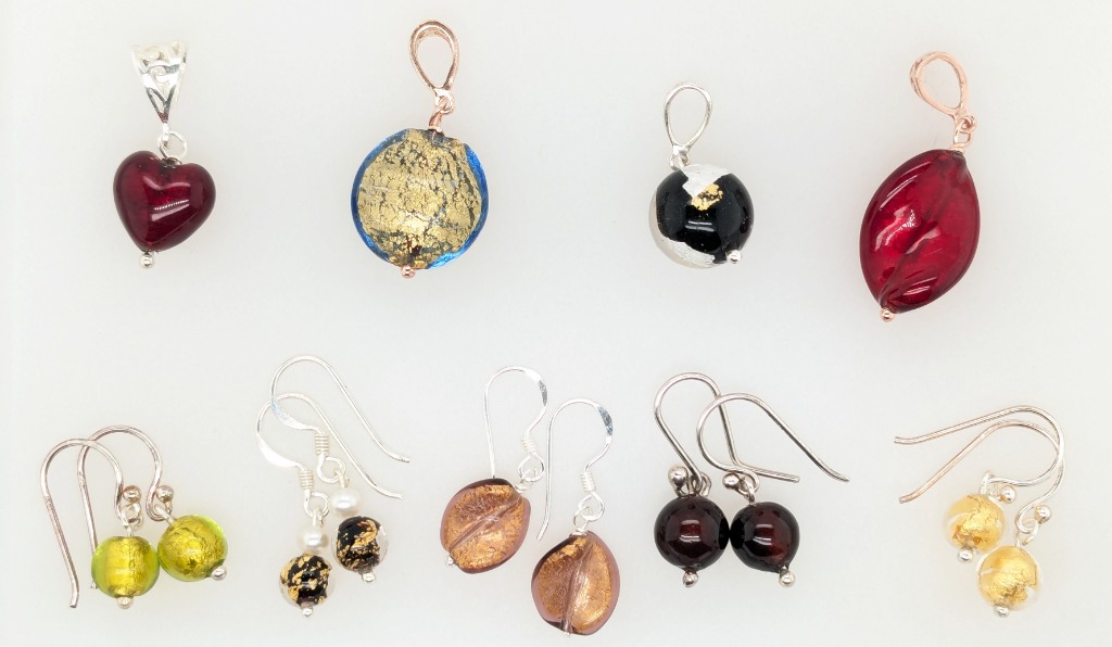 ASSORTED ITALIAN MURANO GLASS AND STERLING SILVER JEWELLERYIncluding: 5 Pairs Of Drop Earrings, And 4 PendantsRrp: $700Markings: 925Condition: Good - Refer To ImagesFC162953+167