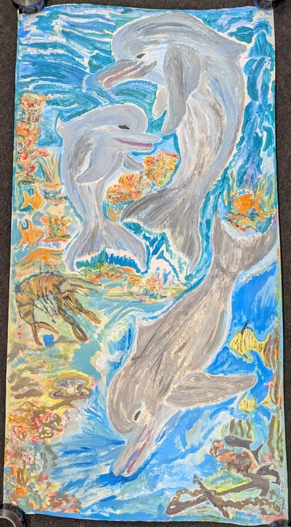 Dolphin painting on paper, paper size: 144cm x 76cm