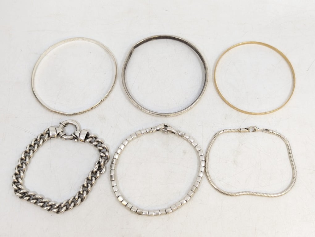 6x 925 Silver Chain Bracelet And Bangles, Items Stamped: 925