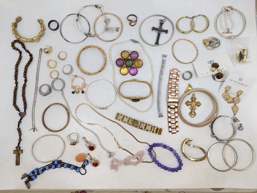 Collection of jewellery pieces including Bangles, Bracelets, Necklace, Rings, EtcSold As Lot