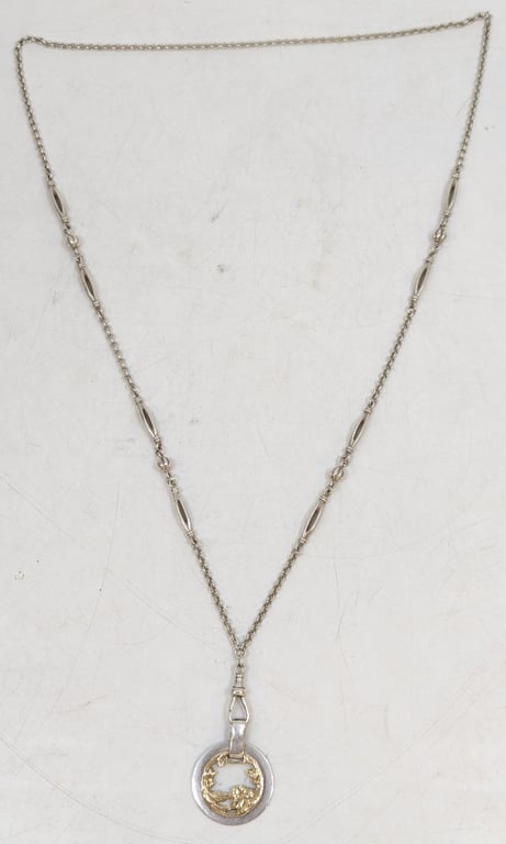 9k Yellow Gold And 925 Silver Pendant On Chain, Pendant Features Silver Ring With Inner 9k Yellow Gold Floral Design, Stamped: 375 / 925Item Weight Approx: 39g
