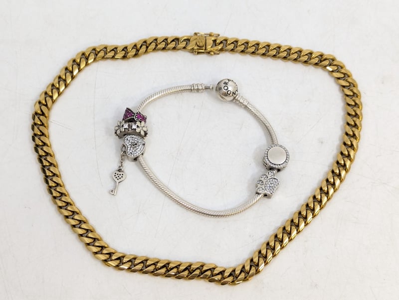 925 Silver Pandora Bracelet With Charms And Chain Necklace