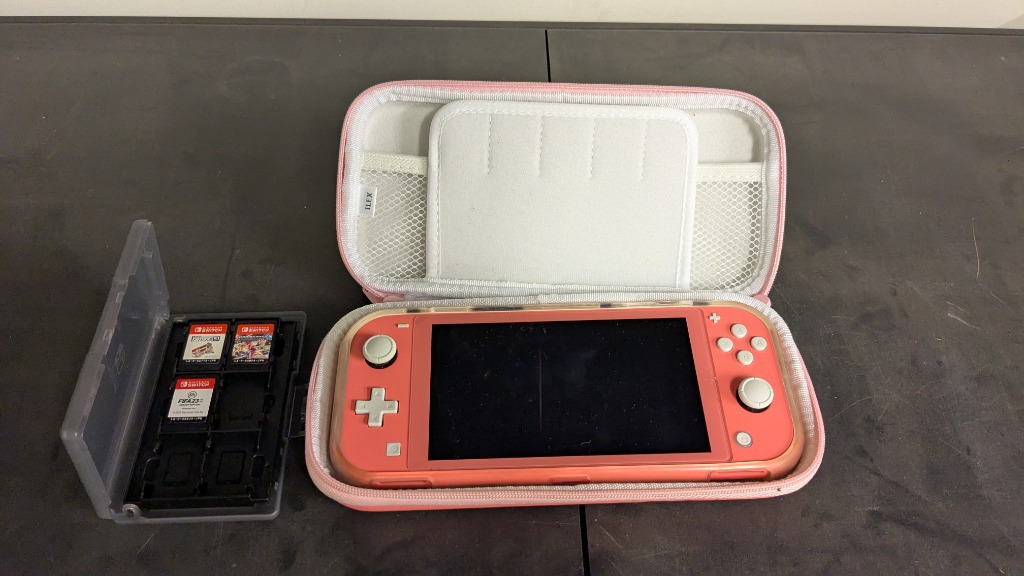 Nintendo Switch, Model: HDH-001, Includes Carry Case, Mario Kart 8 Deluxe (jap), Fifa 23 (Jap) and more SOLD AS LOTNOTE: NO CABLES