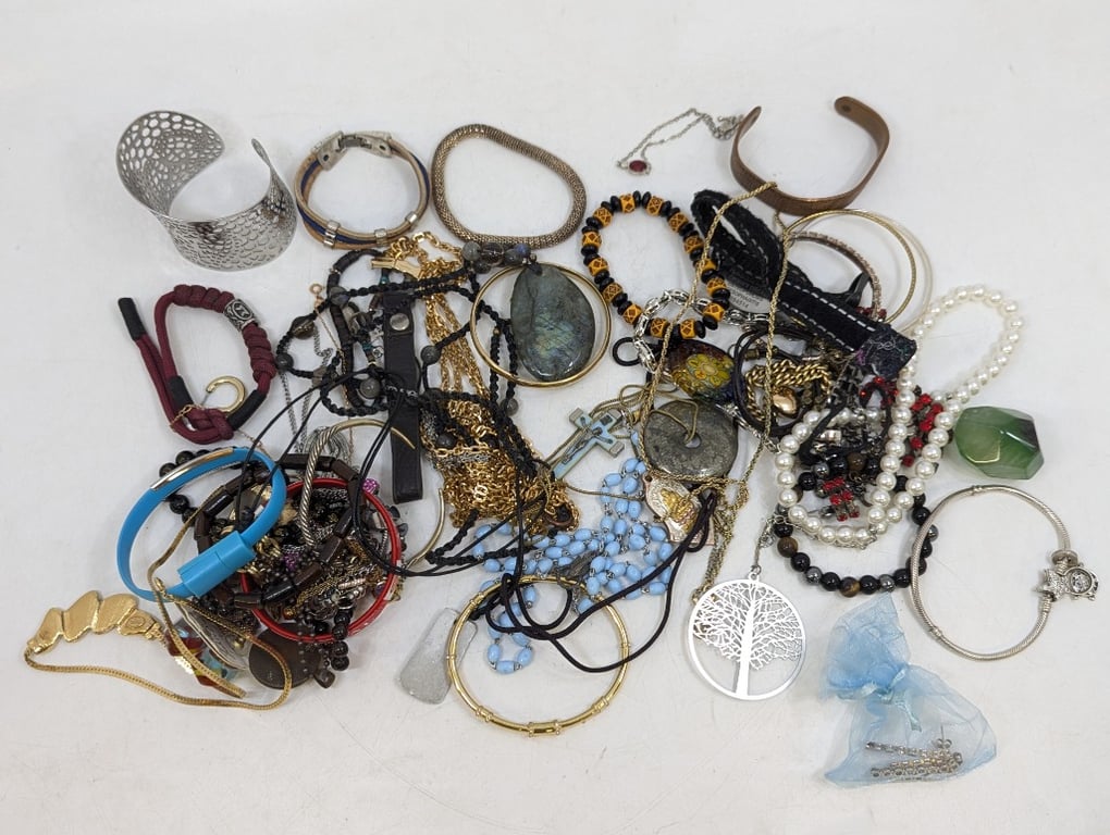 Collection of jewellery pieces including bangles, necklaces, bracelets, etcSold As Lot