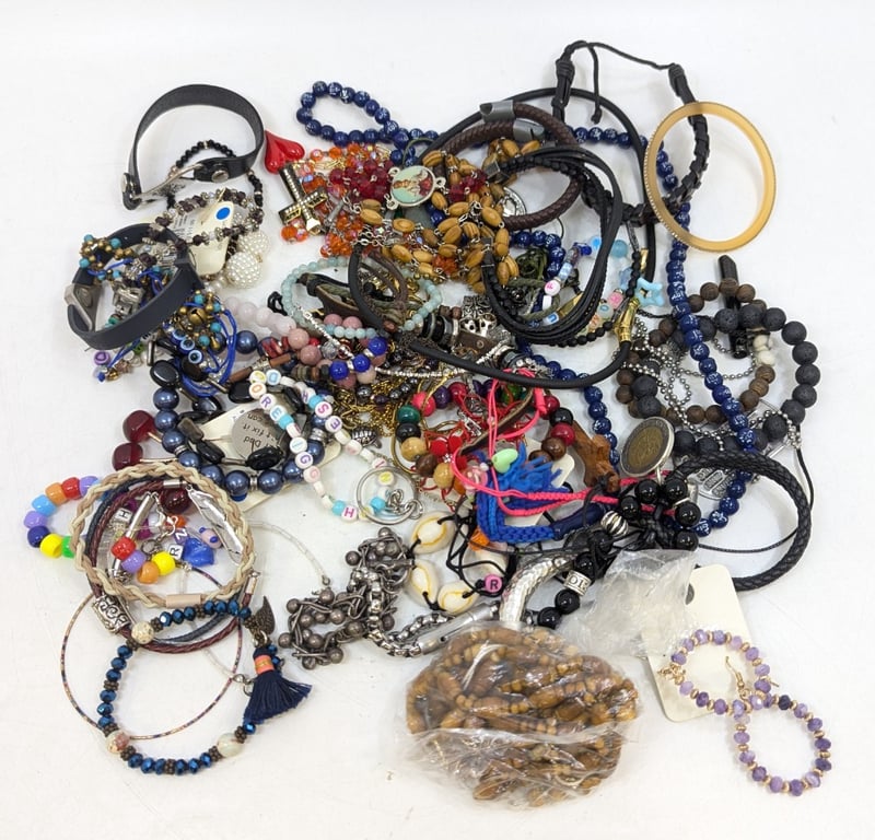 Collection of jewellery pieces including bracelets, necklace, bangle, etcSold As Lot