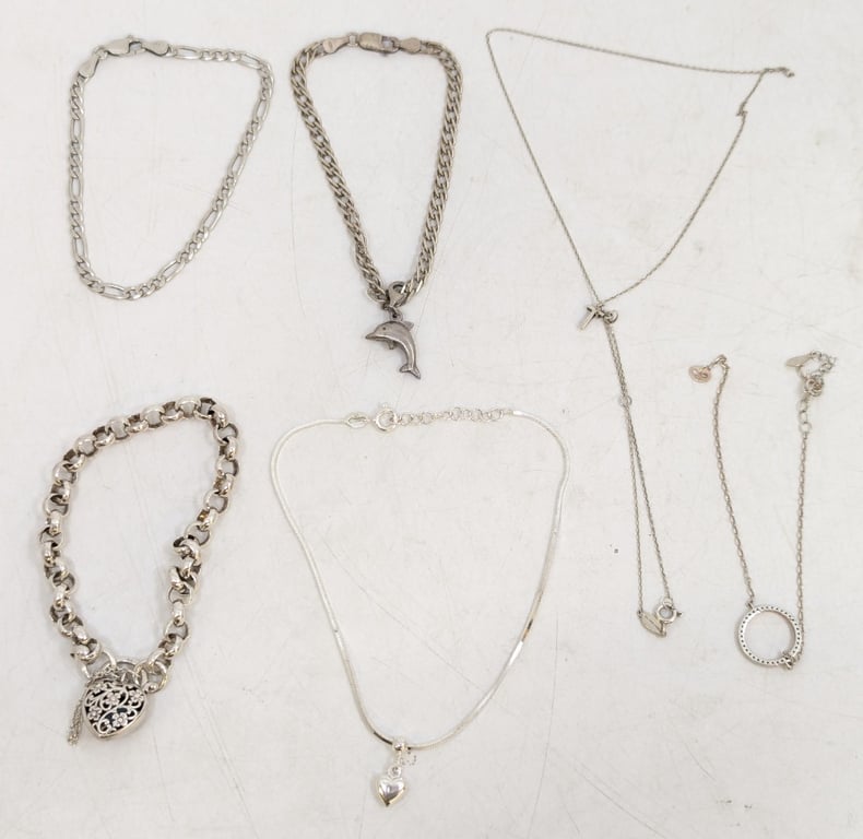 5x 925 Silver Chain Bracelet And 1x Chain Necklace, Items Stamped: 925Sold As Lot