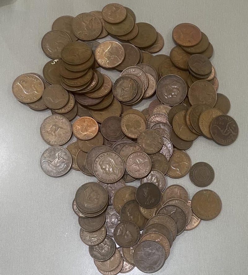 ONE KILO OF AUSTRALIA KGV/KING GEORGE VI/QUEEN ELIZABETH MIX DATE & CONDITION BULK PENNIES & HALF PENNIES MIXED