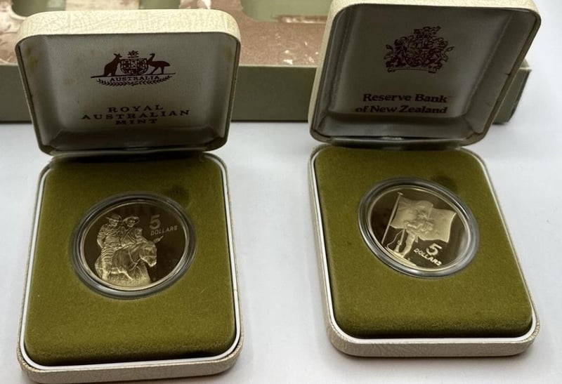 AUSTRALIA & NEW ZEALAND: 1990 $5 ANZAC PROOF 2 COIN SET SCARCE