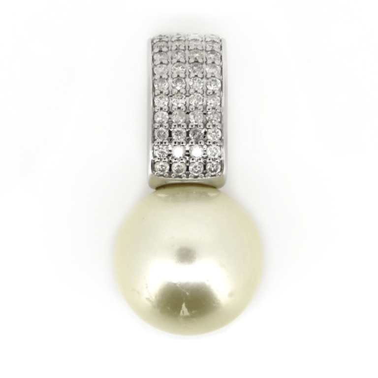 14K WHITE GOLD, WHITE CULTURED SOUTH SEA PEARL AND DIAMOND, PENDANT. The Pendant Features, One Near Round, Cream With Silver Undertones, Medium Nacre, Cultured South Sea Pearl (15.37Mm Size, Medium Lustre, Slightly Blemished). Decorating The Drop Are, 44 Round Brilliant Cut, Diamonds (0.60Ct Tdw, J-K Colour, Si2-I2 Clarity), Pave Set. Valuations Provided by an Independent Third-Party Professional Not Directly Associated With Lloyds Auctions at AUD $$12,390.00This valuation has been conducted by an independent third-party professional. The valuation amount is an assessment by the issuing valuer and does not reflect the auction value of the item. Any inquiries regarding the valuation should be directed to the issuing valuer (refer to contact details on the certificate), as Lloyds Auctions has no affiliation or influence over the valuation, the valuer, or the stated amount. Condition: Good - Refer Images 0645835+257