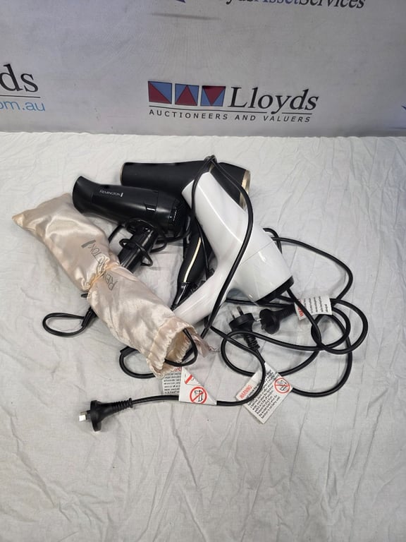 Hair accessories including 3 blowdryers and a Remington straightener Sold as lot