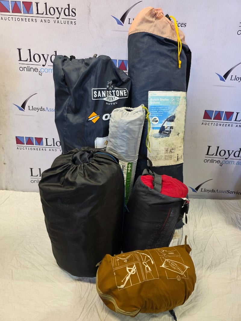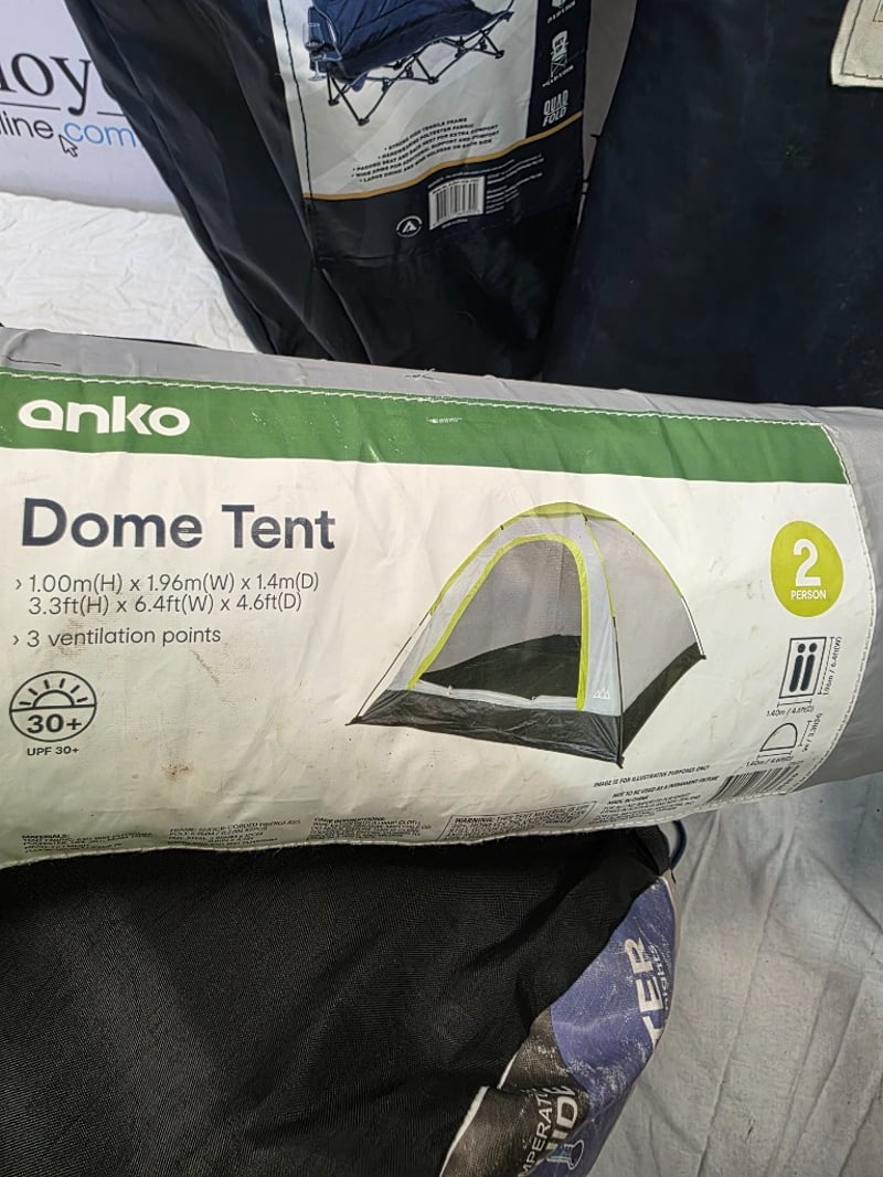 Beach and camping accessories, Includes Hammock, Dome tent, Twin chair, seeping bag and more Sold as lot
