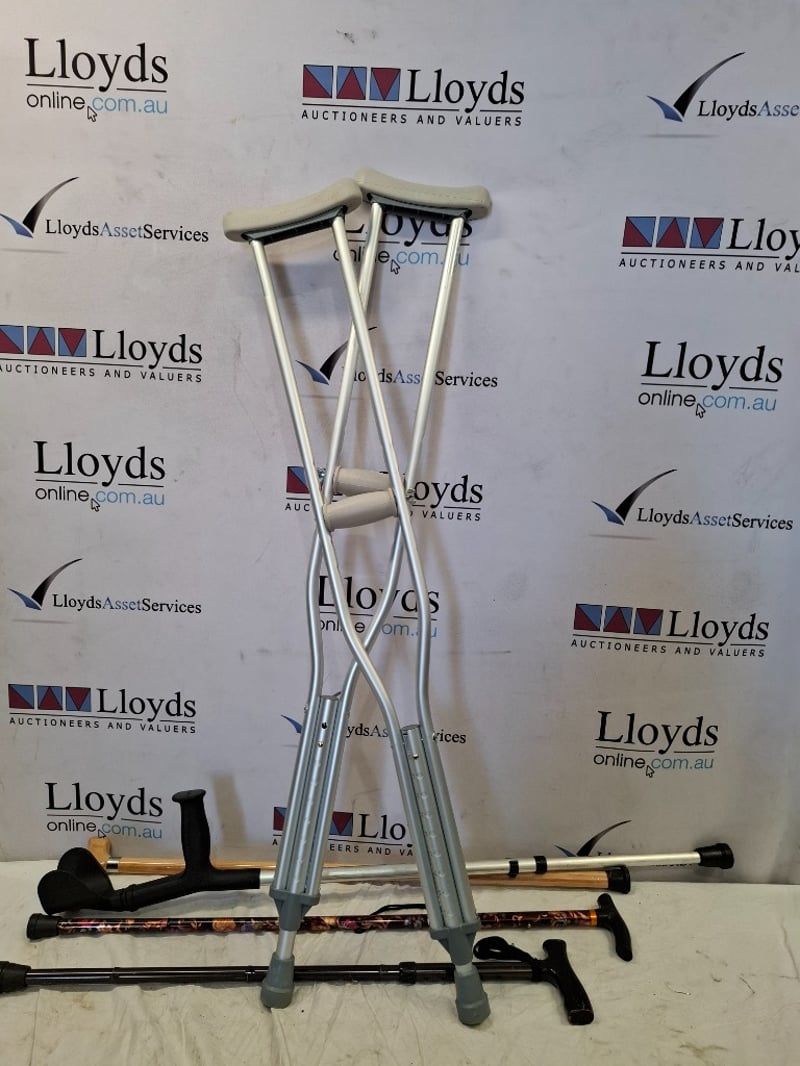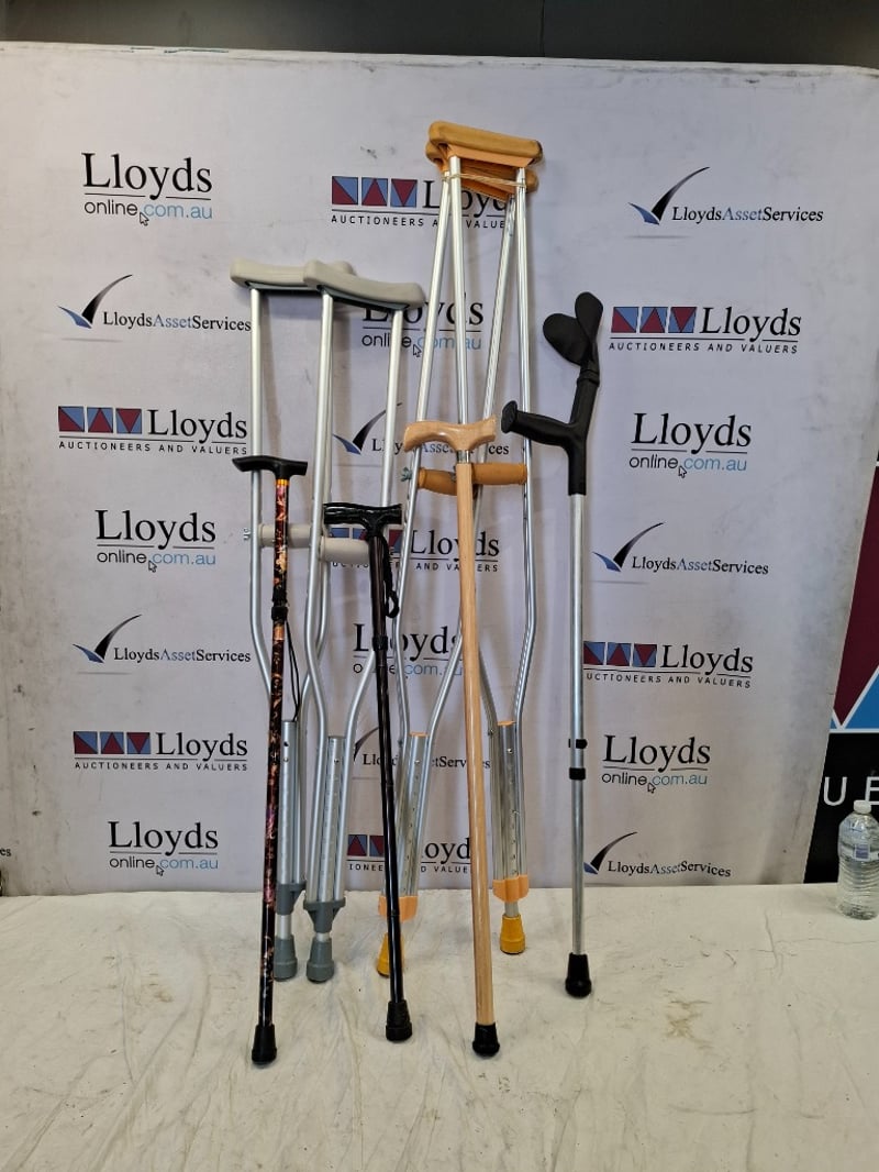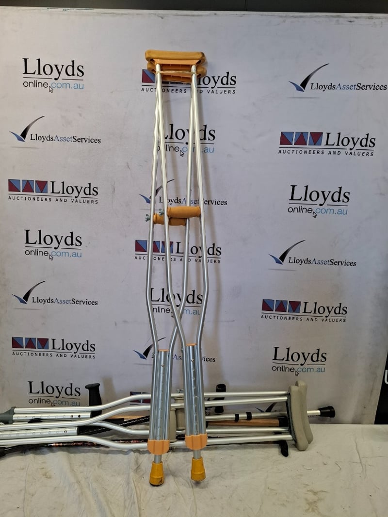 Assorted lot of, crutches & walking aids SOLD AS LOT