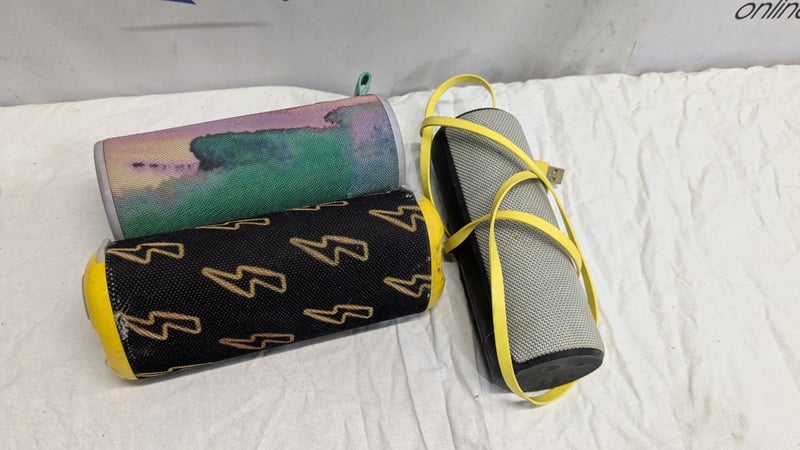 Assorted Portable Speakers, Includes UE Boom, IPX5 and more SOLD AS LOT NOTE: INSPECTIONS HIGHLY RECOMMENDED