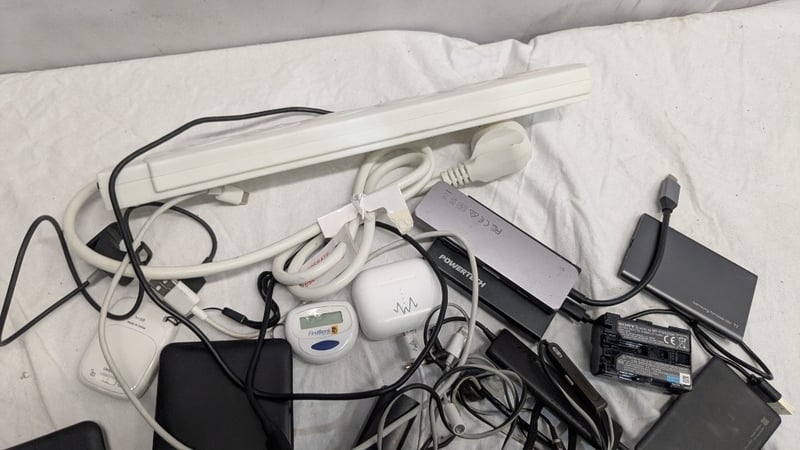 Assorted Tech Items, Includes Power Board, Power Banks, Charger Cables and more SOLD AS LOT