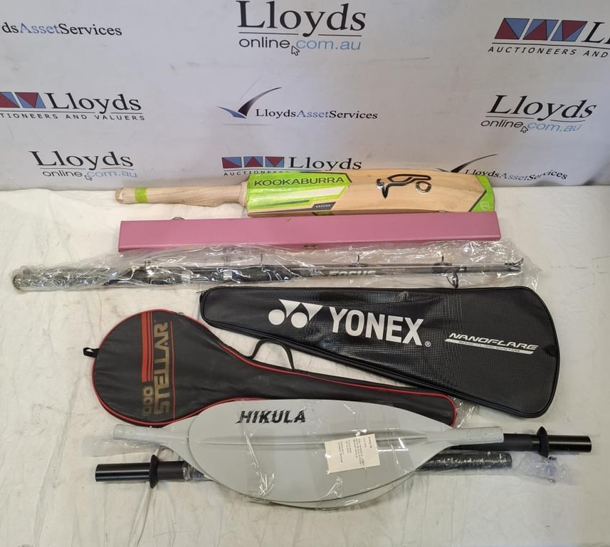 Assorted lot of, pool stick, cricket bat, fishing rod & moreSOLD AS LOT