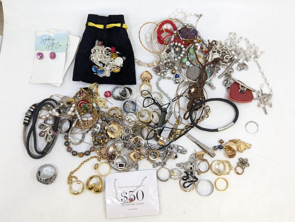 Collection of jewellery pieces including bracelets, rings, earrings, necklace, etcSold As Lot