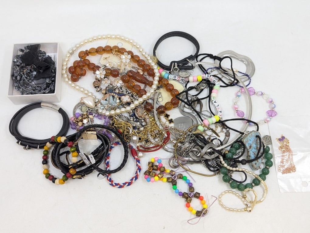 Collection of jewellery pieces including bracelets, necklaces, etcSold As Lot