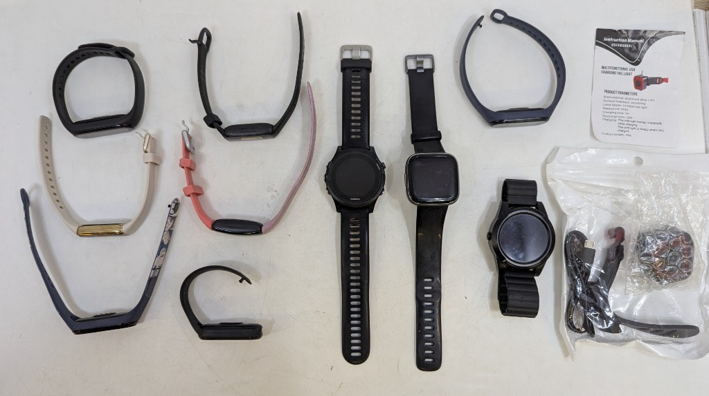 10x Smart Watches / Devices And Tail Light, Brands Include Forerunner 935, Garmin, Various Fitness Trackers, EtcItems Untested, Unknown Working ConditionsSold As Lot