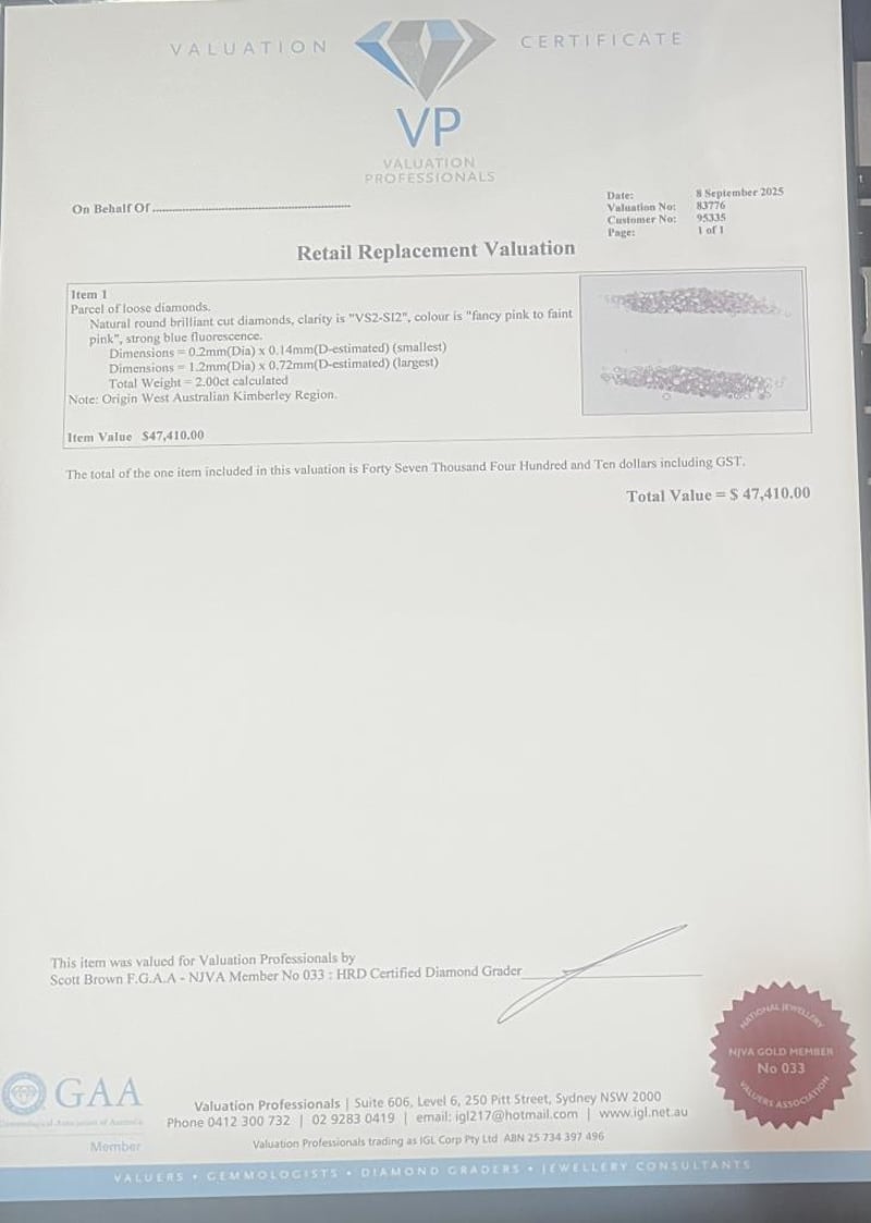 Valuations Provided by an Independent Third-Party Professional Not Directly Associated With Lloyds Auctions at AUD $47410