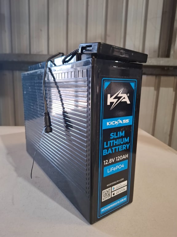 Slim lithium Battery 12.8V 120Ah, Kickass, KA1212OSLIM-LIONNOTE: SCRATCHES, ONE HANDHOLDS MISSING