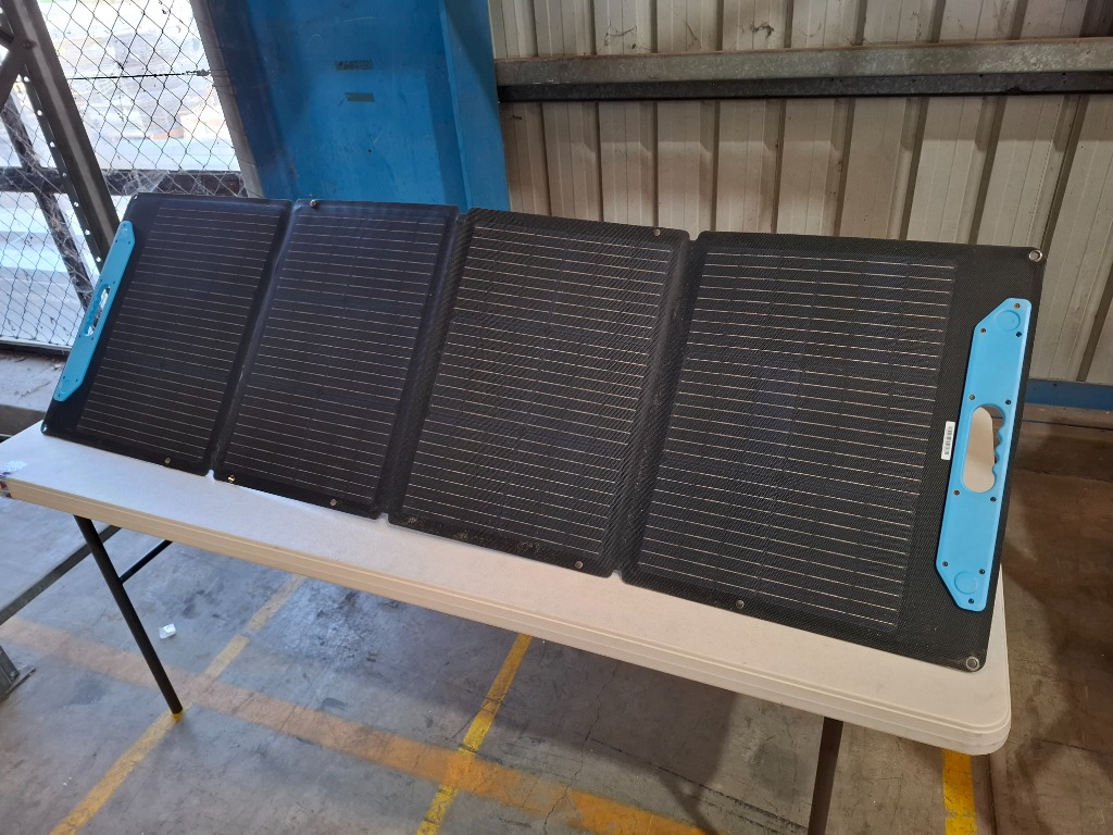 KickAss 12V 120W Premium Folding Portable Solar Panel Dimensions: 55cm x 174 cm NOTE: WEAR AND TEAR, CLEANING REQUIRED