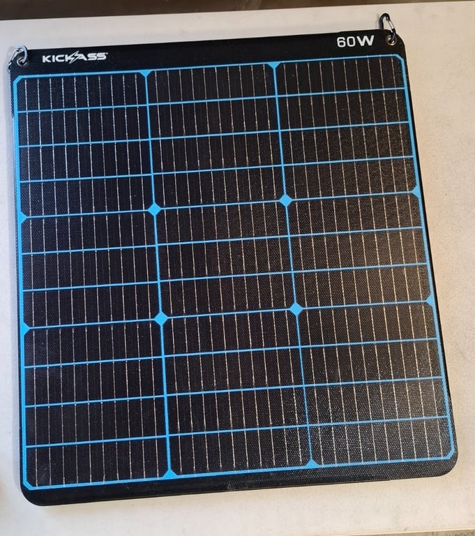 Solar panel with case, 60W, portable Dimensions: 56 cm x 63 cmNOTE: WEAR AND TEAR, CLEANING REQUIRED