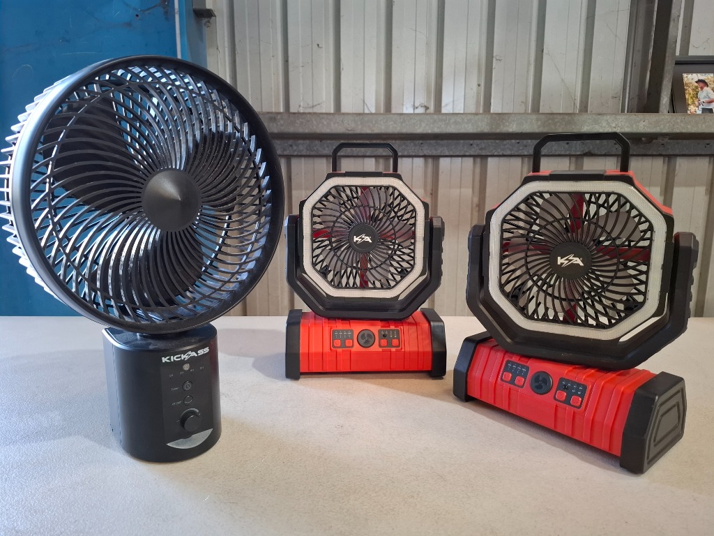 Assortment of battery powered Camping Fans. adjustable speeds and angles SOLD AS LOT